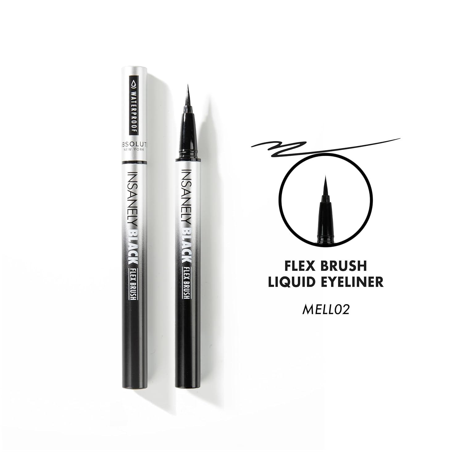 Absolute New York MELL01 Insanely Black Drawing Felt Liquid Eyeliner, Waterproof and Smudegeproof, Long Lasting, Contact Lens Friendly Liquid Eyeliner