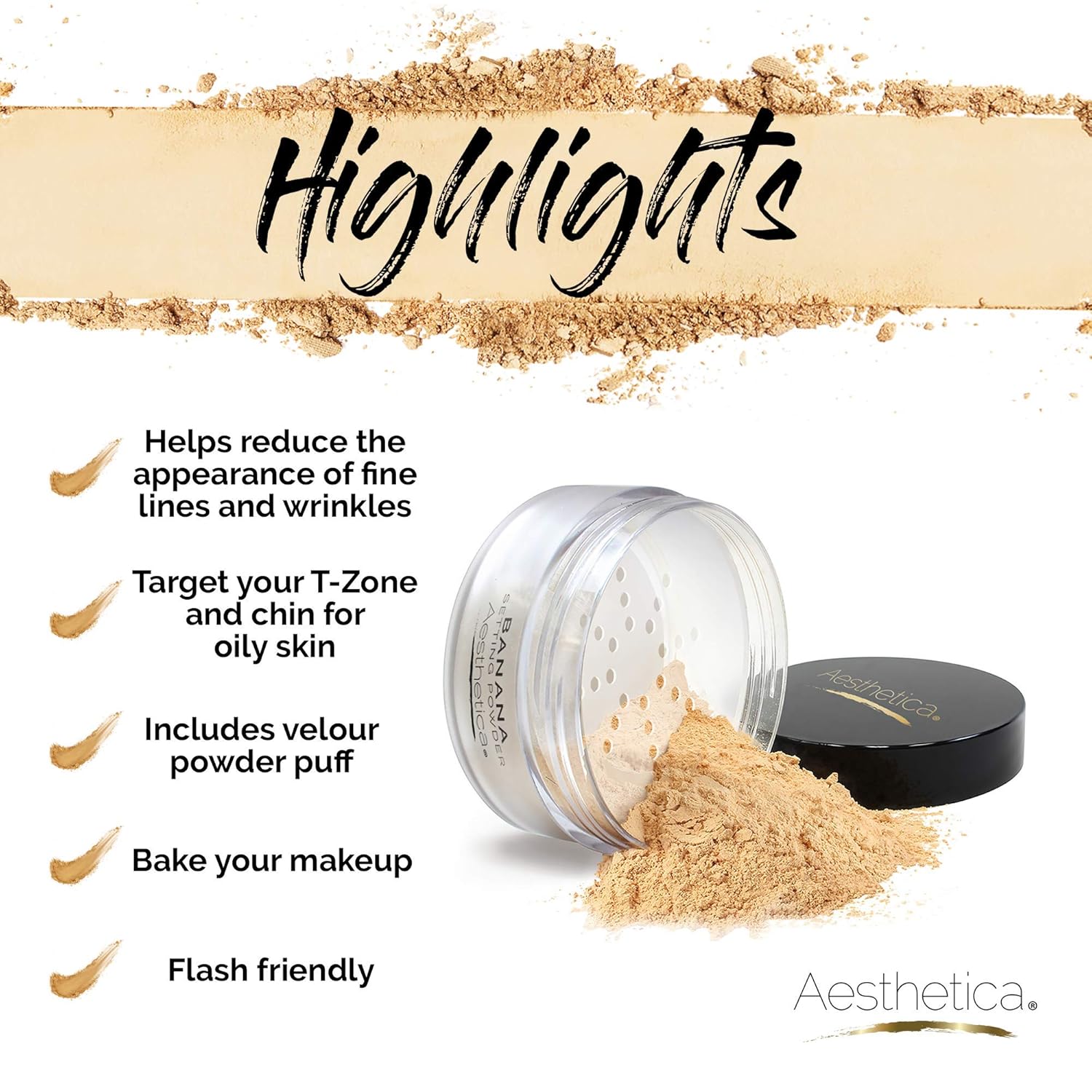 Aesthetica Banana Loose Setting Powder – Flash Friendly Superior Matte Finish Highlighter & Finishing Powder – Includes Velour Puff