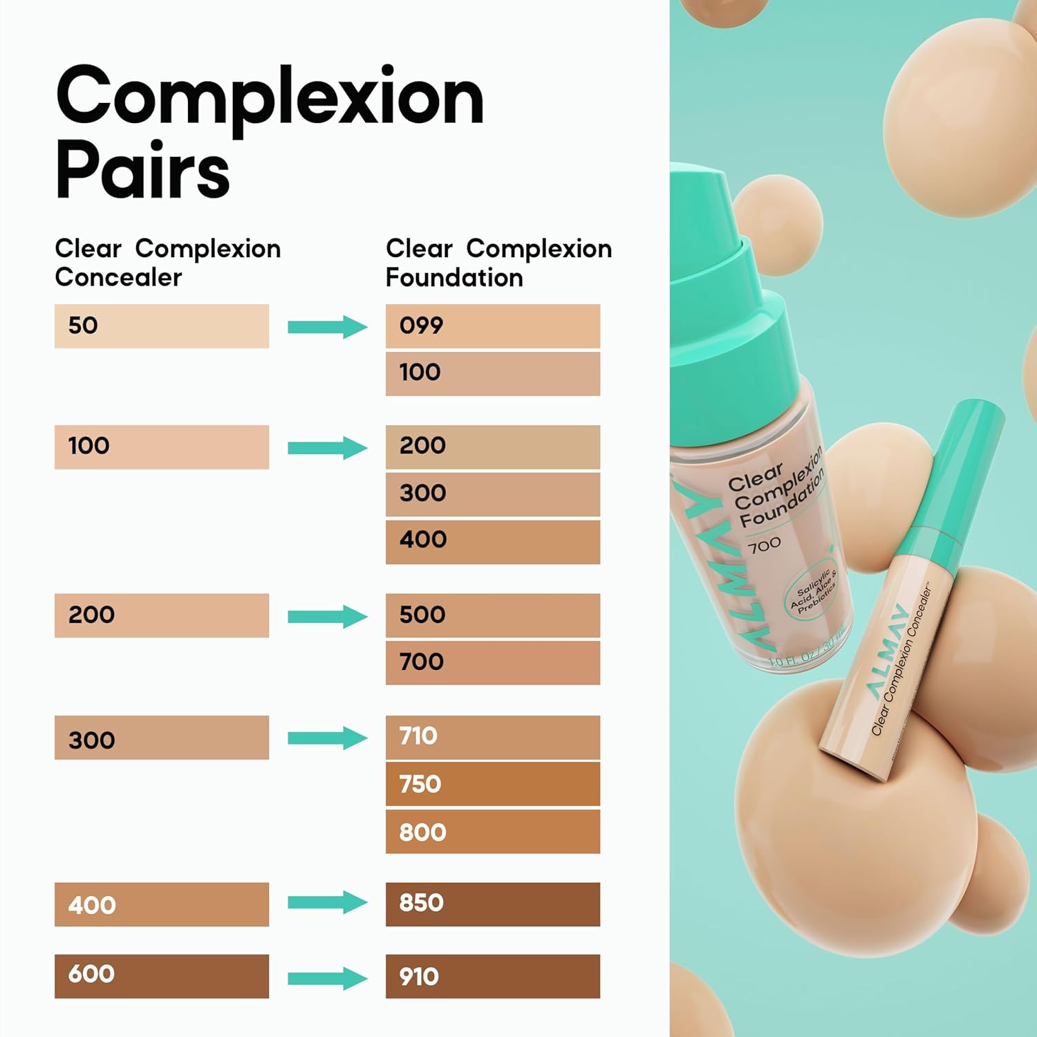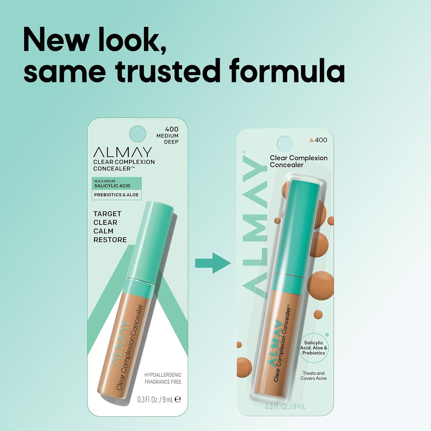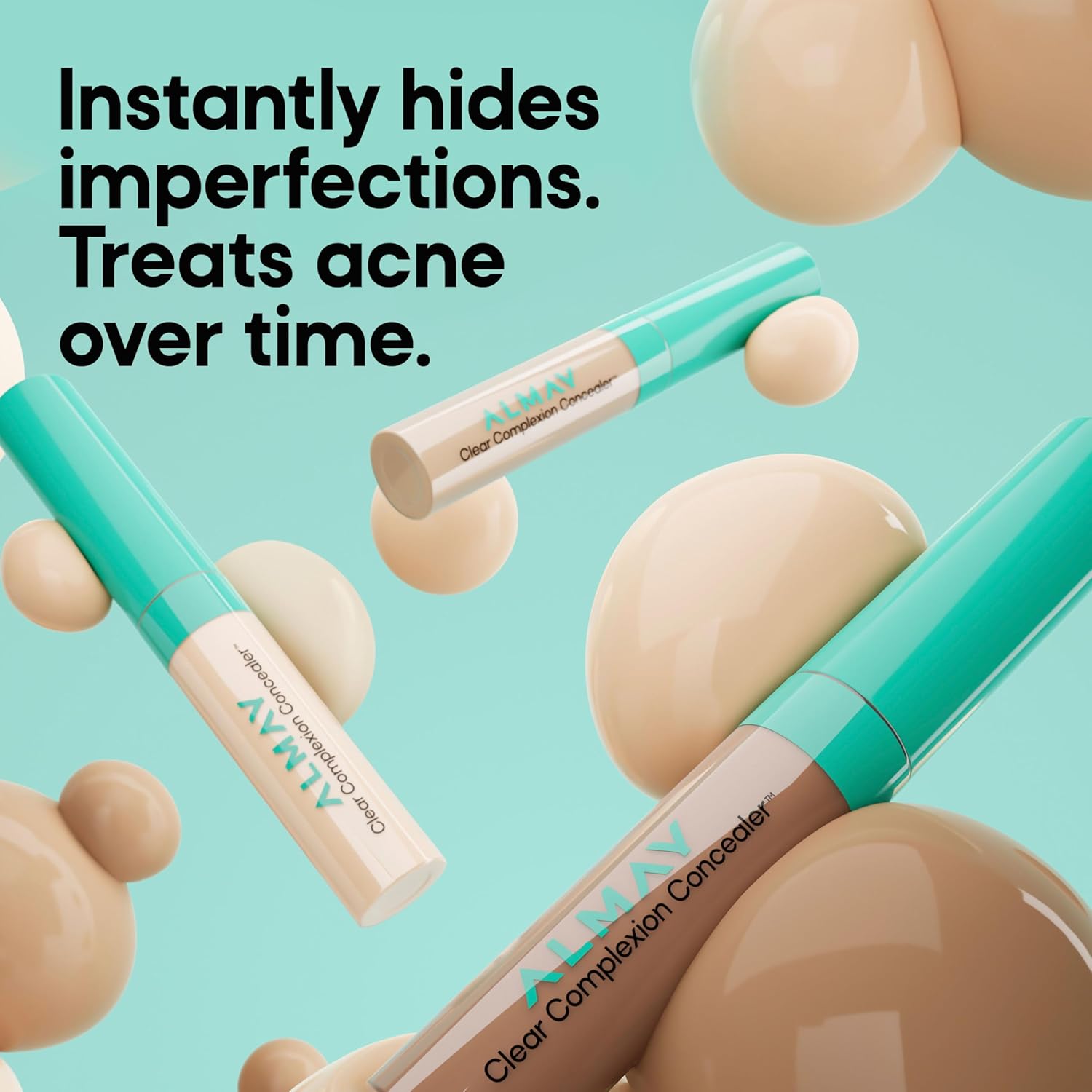 Get skin that looks clearer in just 1 week* with ALMAY ® Clear Complexion Concealer™ . This lightweight, full-coverage concealer treats acne and visibly evens skin tone over time, while instantly concealing blemishes, breakouts and redness. Doubles as a targeted treatment for blemishes—formulated with 2% Salicylic Acid to help clear breakouts, Prebiotics to support a healthy skin barrier + Aloe Vera to soothe and moisturize. All-day wear. Non-comedogenic. Vegan. EVERYONE AGREES: 94% agree skin feels soft** 93% agree skin looks clearer after 14 days** 89% agree it instantly covers and conceals blemishes, breakouts, and skin redness** 87% agree skin looks healthier after 14 days** 85% agree it minimizes and blurs the appearance of pores** *Skin looked clearer at the 1-week and 2-week time point of a consumer perception study, which included 54 participants. **Consumer study, 54 participants, after 14 days of continued use.
