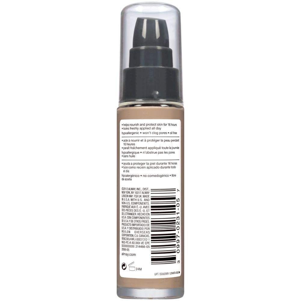 Almay Liquid Foundation, Truly Lasting Color, Long Wearing Natural Finish, Vitamin E and Lemon Extract, Hypoallergenic, Cruelty-Free, Dermatologist Tested, 240 Beige, 1 fl oz