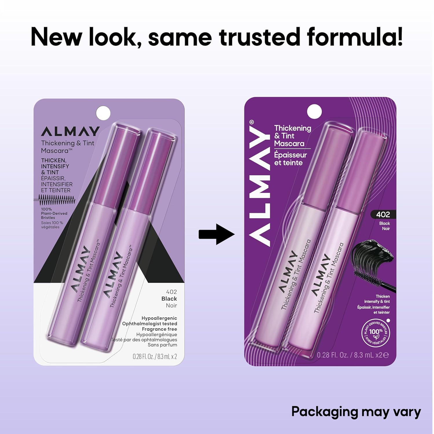 Almay Thickening & Tint Mascara, Instant Soft Full Volume, Conditions & Darkens Natural Lashes Over Time, No Flaking or Clumping (Packaging May Vary), 402 Black, 2 count