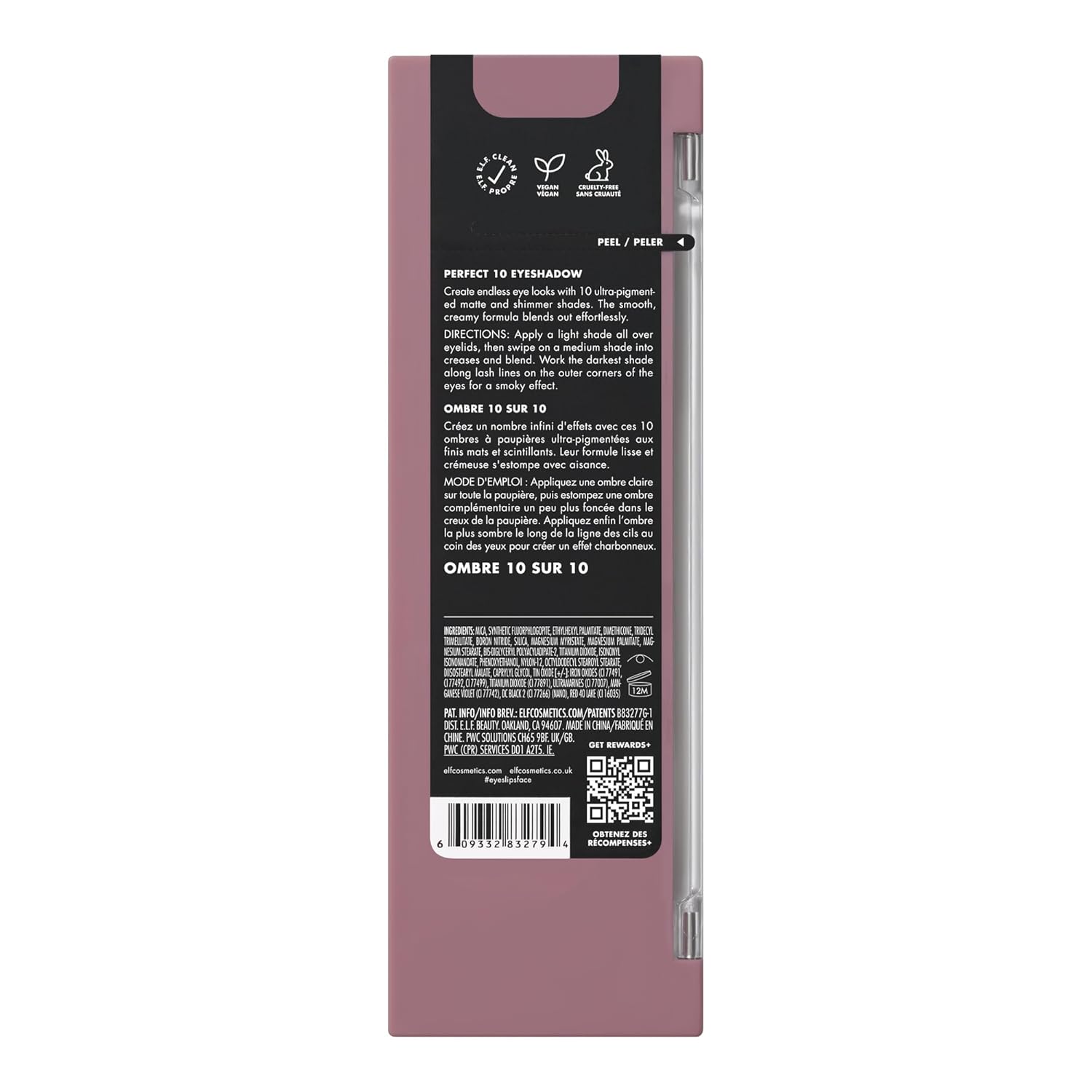 10 ULTRA-PIGMENTED SHADES: Make your eyes the prize with the e.l.f. Perfect 10 Eyeshadow Palette. Get inspired with this 10-color eye palette, perfect for creating a variety of eye-catching looks.