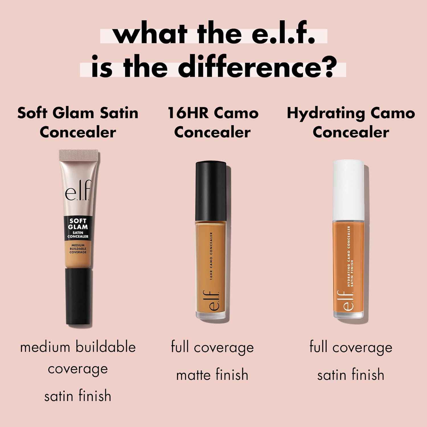 Conceal dark circles, redness, and spots with e.l.f. Cosmetics Soft Glam Satin Concealer.