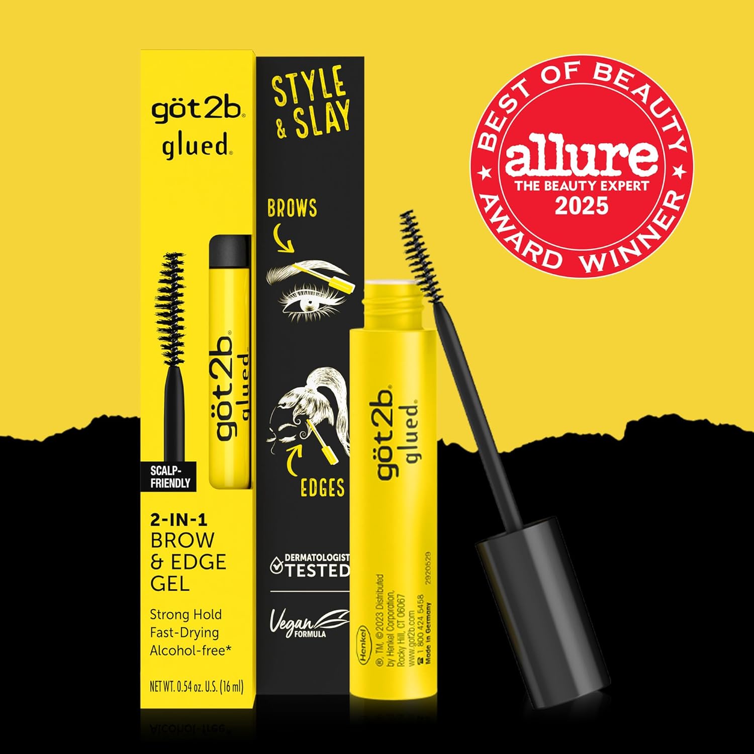 Got2b Glued Brows & Edges Gel Style and slay with the got2b Glued 2-in-1 Brows & Edges Gel—your go-to solution for sleek, defined brows and smooth edges that last. This fast-drying gel is designed to deliver strong, all-day hold with zero stickiness or crunch. Whether you’re shaping brows for a polished look or taming baby hairs along your hairline, this compact powerhouse handles it all with ease. The dual-sided wand lets you apply with precision: the wide side coats evenly while the narrow side sculpts and sets. Dermatologist-tested and infused with castor oil, this vegan formula * does not contain alcohol ** and is gentle for all skin types, including sensitive skin. Sweat and humidity-resistant, this gel is built to keep up with your busiest days—from early mornings to late nights, work meetings to weekend festivals. It dries down clear for a clean finish and won’t flake or fade, no matter your hair texture or skin tone. Style with confidence, wherever life takes you. With got2b Glued, your brows and edges are always on point. *free of animal derived ingredients **alcohol defined as ethanol and isopropyl alcohol