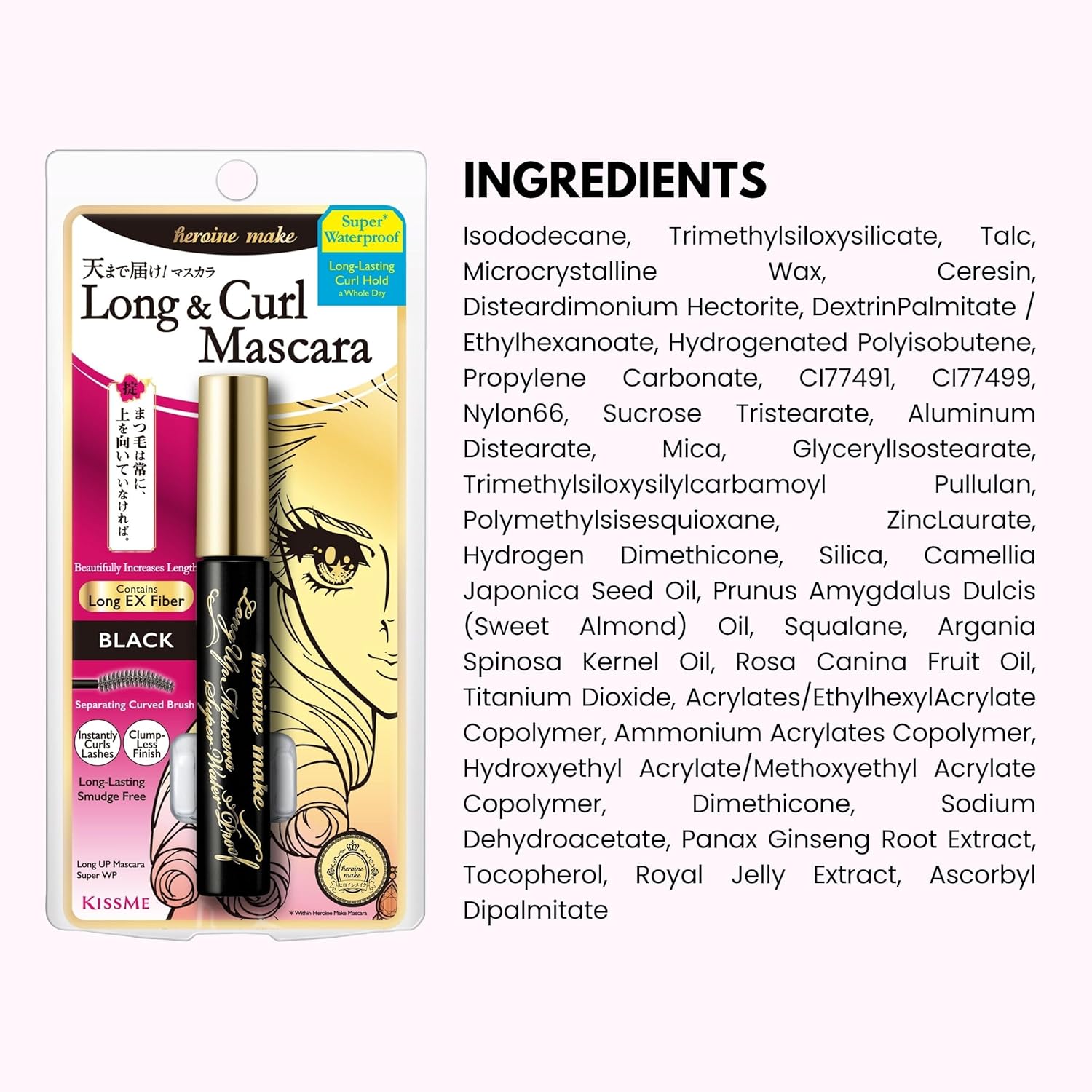 HEROINE MAKE by KISSME Waterproof Mascara Black | Tubing Mascara Volume and Length by Defining Fiber for Long and Curl Eye Makeup for Women, Made in Japan, Black, 1 EA