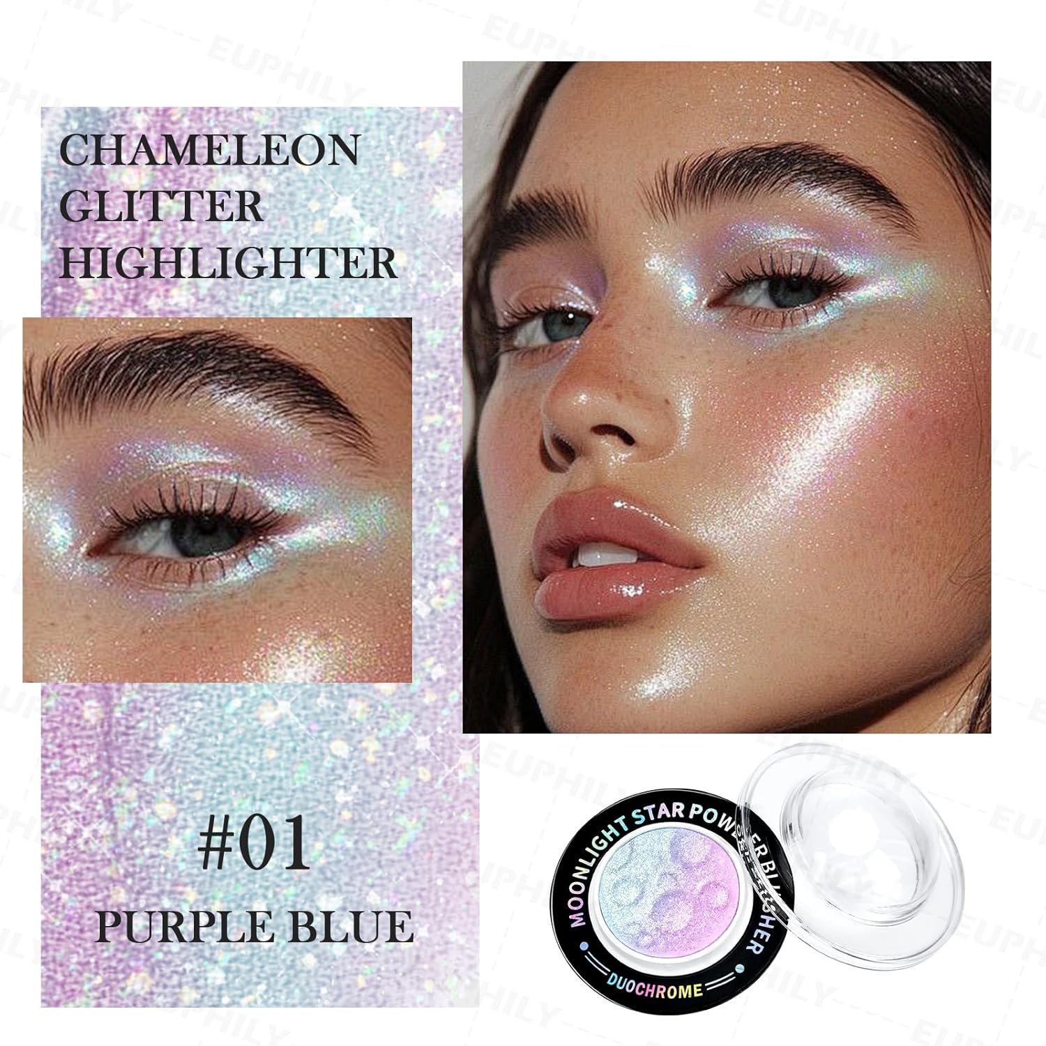 Holographic Glitter Face Highlighter Palette, Chameleon Multichrome Metallic Shimmer Highlighters, Inner Corner Eye Color Shifting Sparkle Illuminator, Highly Pigmented Eye Brighten Makeup #01