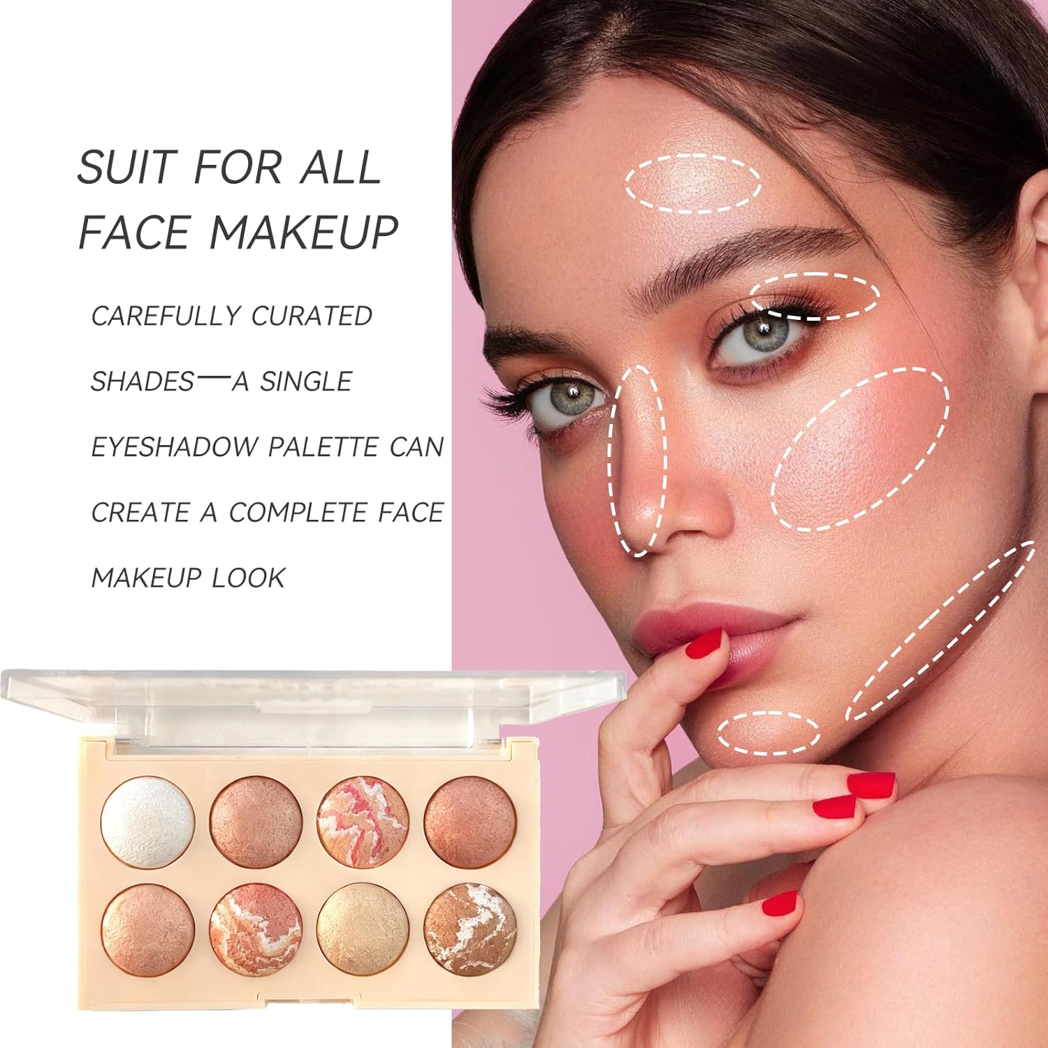 K’APEINE 8 Colors Baked Powder Palette, Pink Gold Brown Face Highlighter Eyeshadow Blush Contour Makeup Palette All Face Baked Makeup Kit Blendable Highlighter for Women Daily, Parties,Festivals-02#