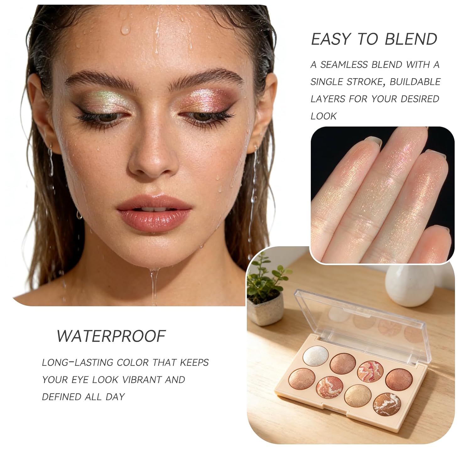 All-Day Wear: Whether you prefer soft, blended looks or bold statements, these shades stay vibrant, smudge-proof, and fade-resistant from morning to night. The waterproof, smudge-resistant formula ensures your eye makeup stays flawless for any occasion.