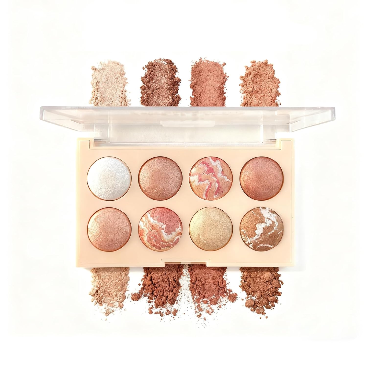 K’APEINE Baked Powder Palette, 8 Colors Light Brown Pink Highlighter Eyeshadow Blush Contour All Face Makeup Palette Blendable Baked Makeup Kit for Women Girls Daily, Parties,Festivals-01#