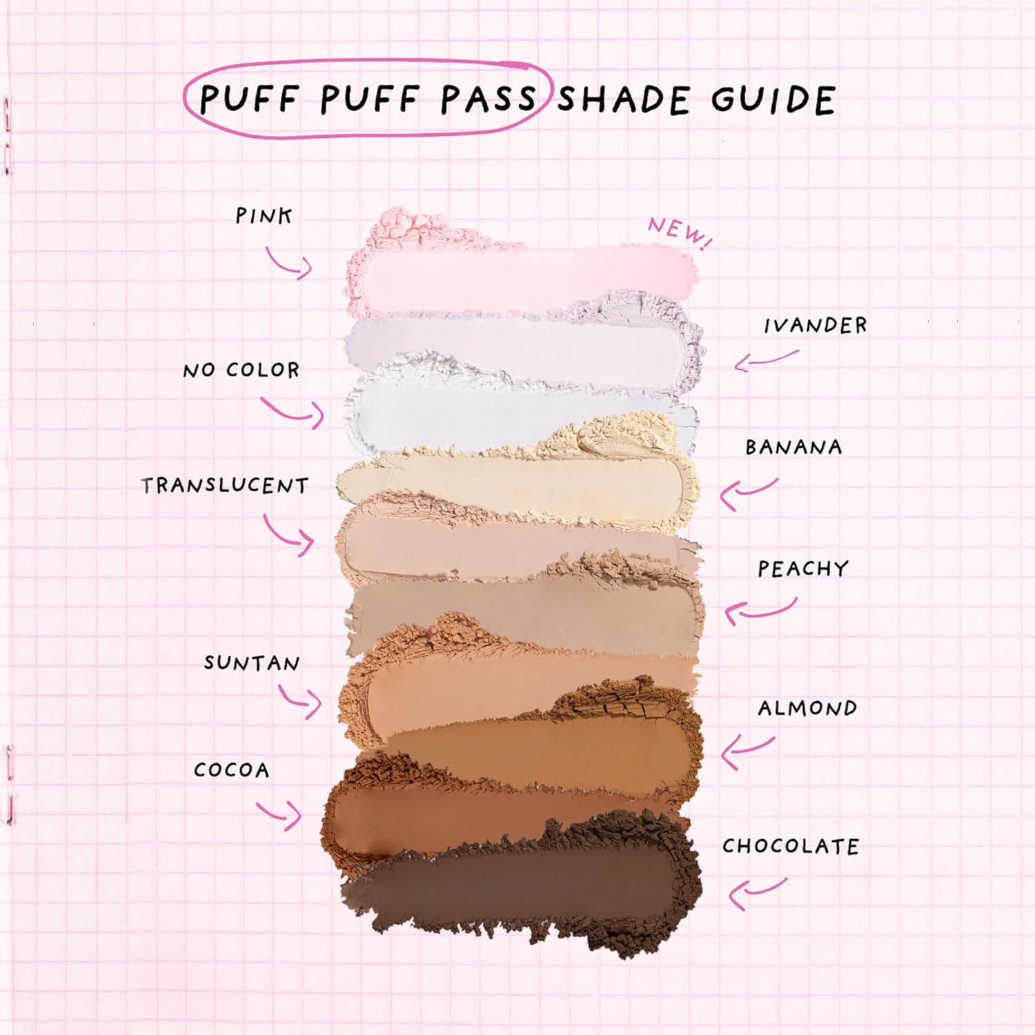 How To Apply: Lightly press our Puff Puff Pass Powder on the skin with the velour puff and let it set for 1-5 minutes; Dust off excess powder for an all-day glam look