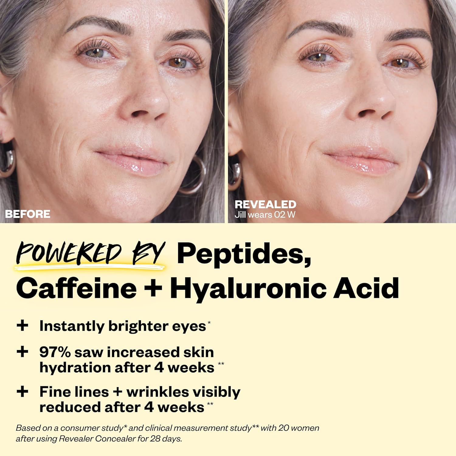 HYALURONIC ACID-INFUSED FORMULA: Enriched with hyaluronic acid, caffeine, peptides, and algae extract to help hydrate and smooth the look of skin.