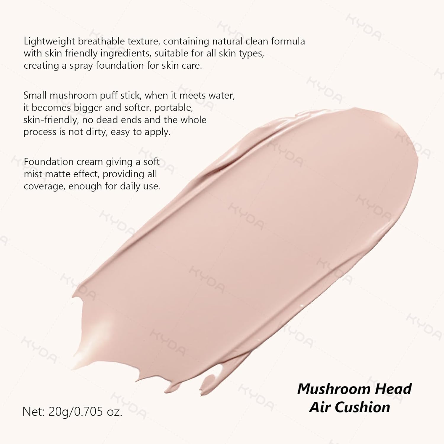 KYDA Mushroom Head Air Cushion BB Cream,Concealer Lasting Nude Makeup Moisturizing Pigment CC Liquid Foundation, Even Skin Tone Makeup Base Primer-Natural