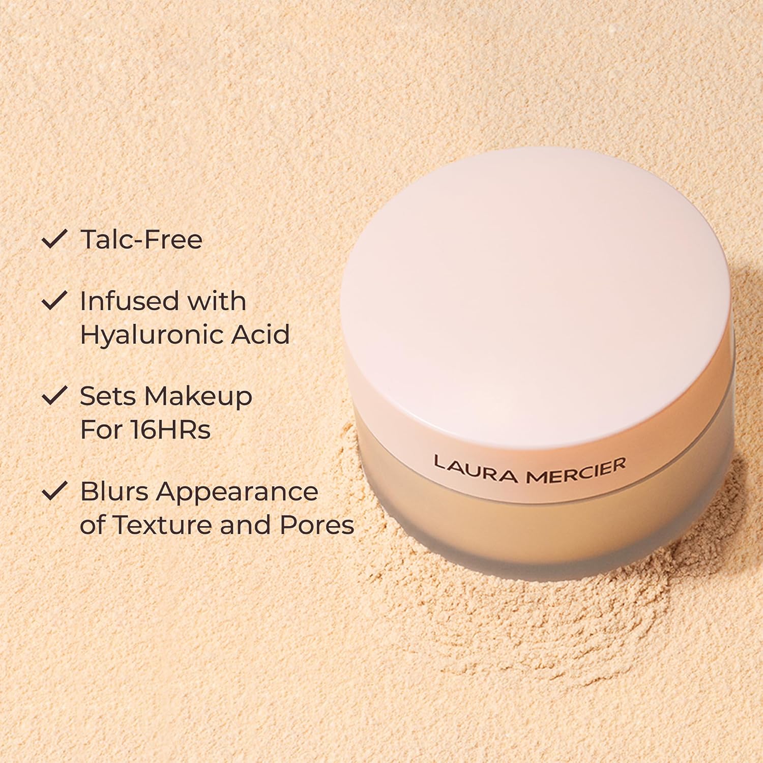 Laura Mercier Translucent Loose Talc-Free Setting Powder Ultra-Blur, 16HR Hydrating Wear, Natural Finish, Hyaluronic Acid-Infused, Normal to Dry & Mature Skin