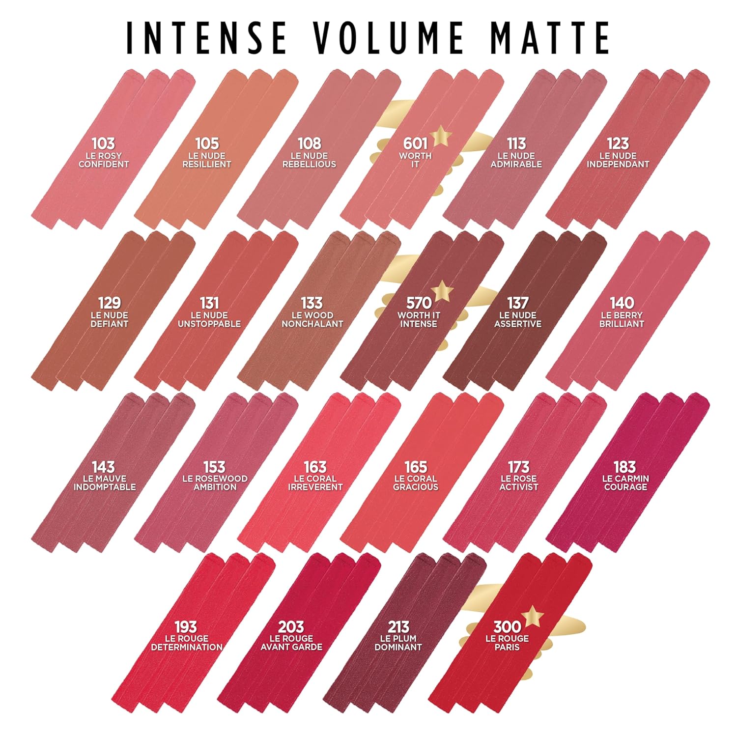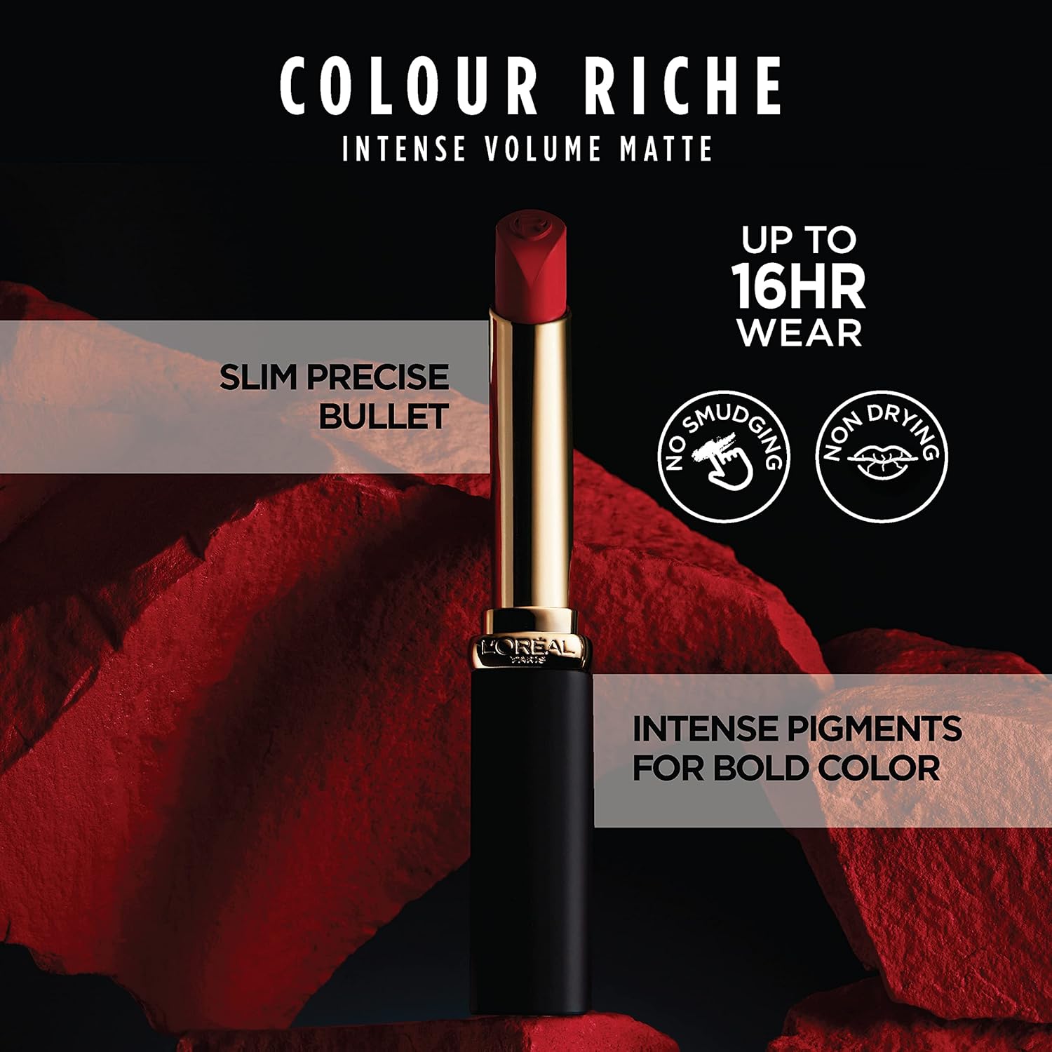 L’Oreal Paris Colour Riche Intense Volume Matte Lipstick, Lip Color Infused with Hyaluronic Acid for up to 16hr All Day Comfort, Le Carmin Courage, 0.06 oz