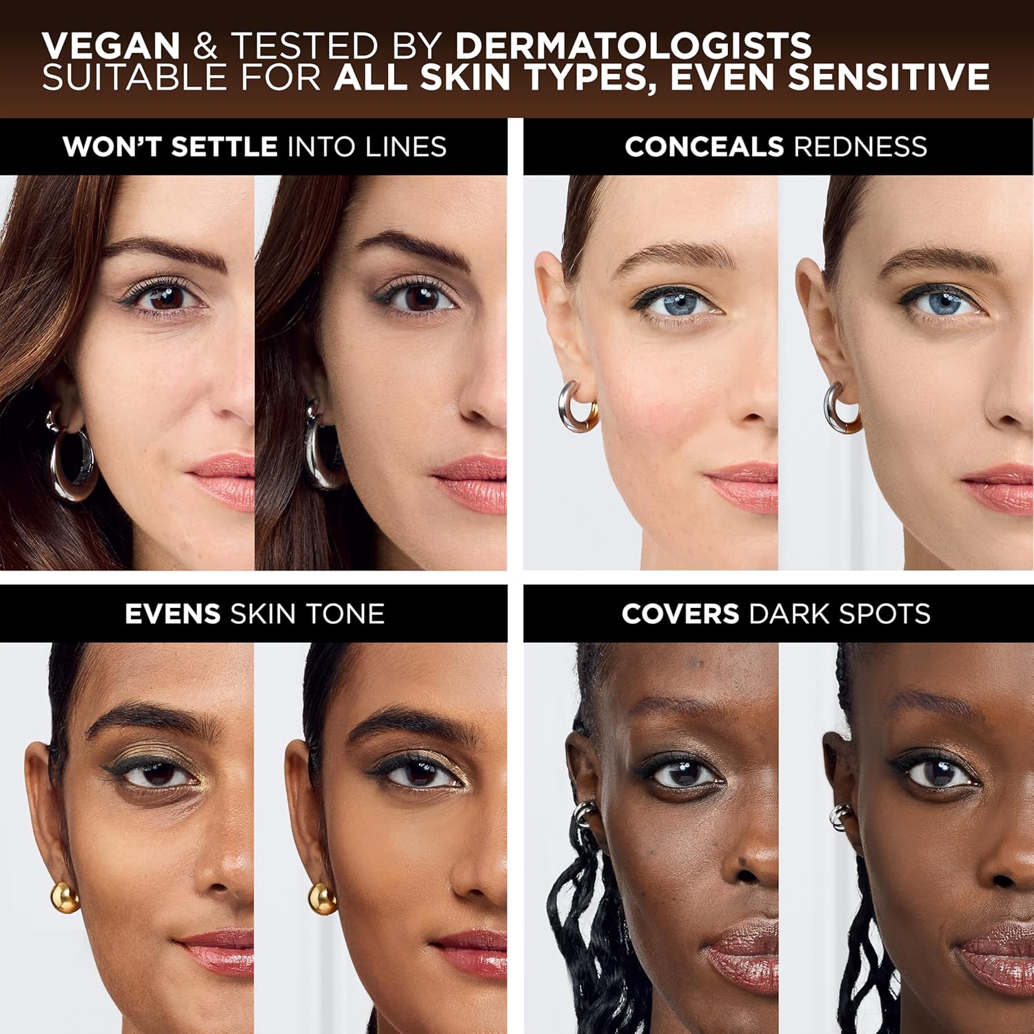 Science That Sees Your True Match – Formulated with 6 pigments for the most precise match. 99 percent of women found their true match in a consumer test of 312 women. Available in 47 shades to match your undertone – cool, neutral or warm