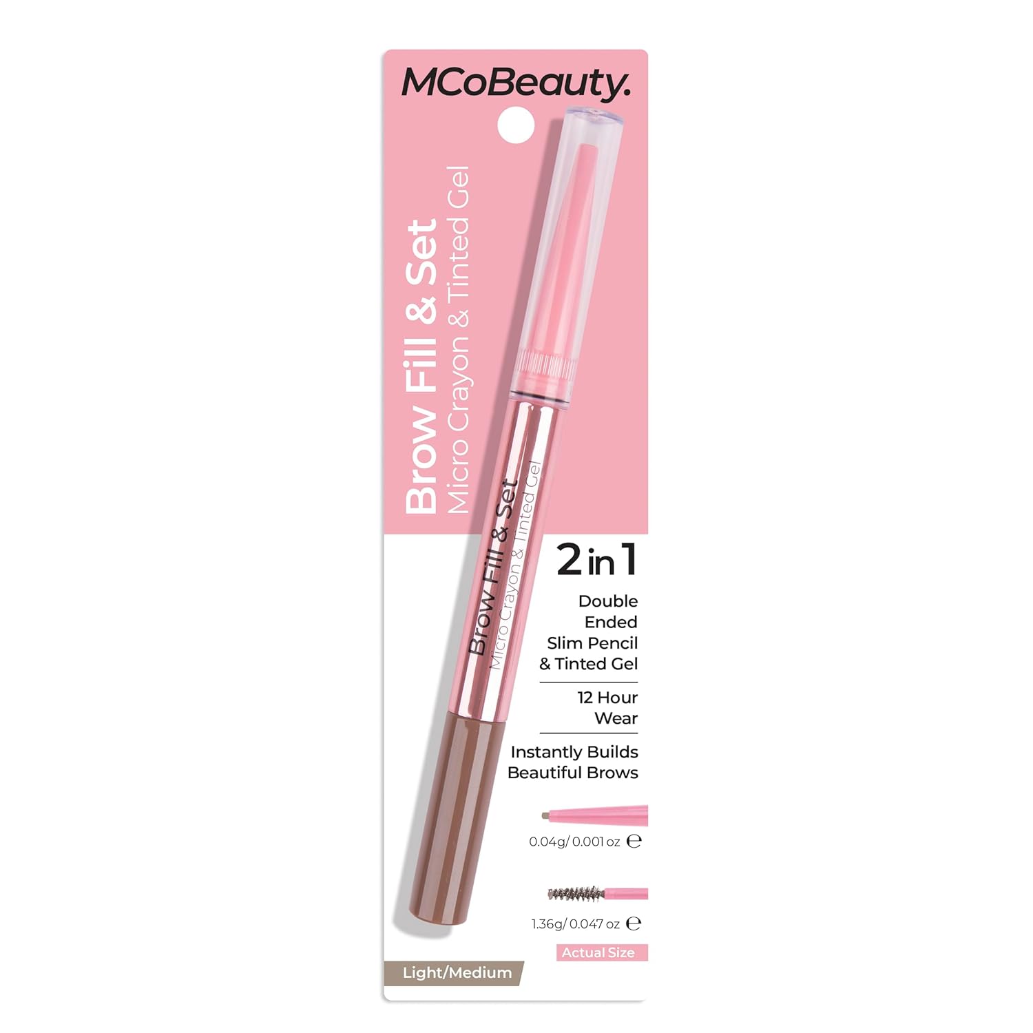 MCoBeauty – Brow Fill & Set – Brow Pencil & Eyebrow Tinted Setting Gel – Flexible Silicone Brush with Bristles – Versatile Gel Formula – Light to Medium Shade – For A Natural Looking Full Brow