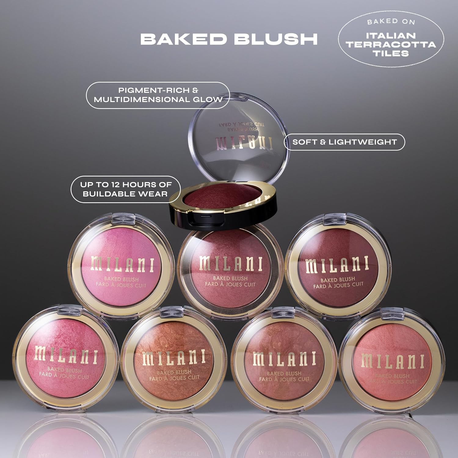 Milani Baked Blush, Updated Powder Blush for Cheeks, Cruelty Free Makeup – Shape, Contour & Highlight Face for a Shimmery or Matte Finish – Dolce Pink