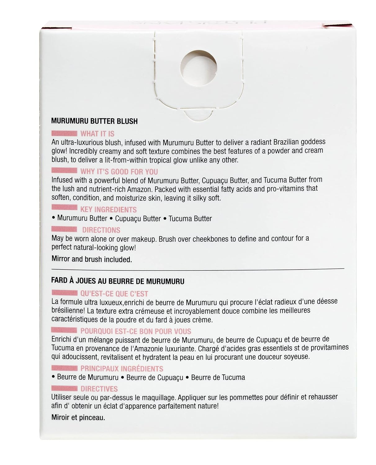 WHAT IT IS: An ultra-luxurious blush, infused with Murumuru Butter to deliver a radiant Brazilian goddess glow! Incredibly creamy and soft texture combines the best features of a powder and cream blush, to deliver a lit-from-within tropical glow unlike any other. WHY IT’S GOOD FOR YOU: Infused with a powerful blend of Murumuru Butter, Cupuacu Butter, and Tucuma Butter, from the lush and nutrient-rich Amazon. Packed with essential fatty acids and pro-vitamins that soften, condition and moisturize skin, leaivng it silky soft.