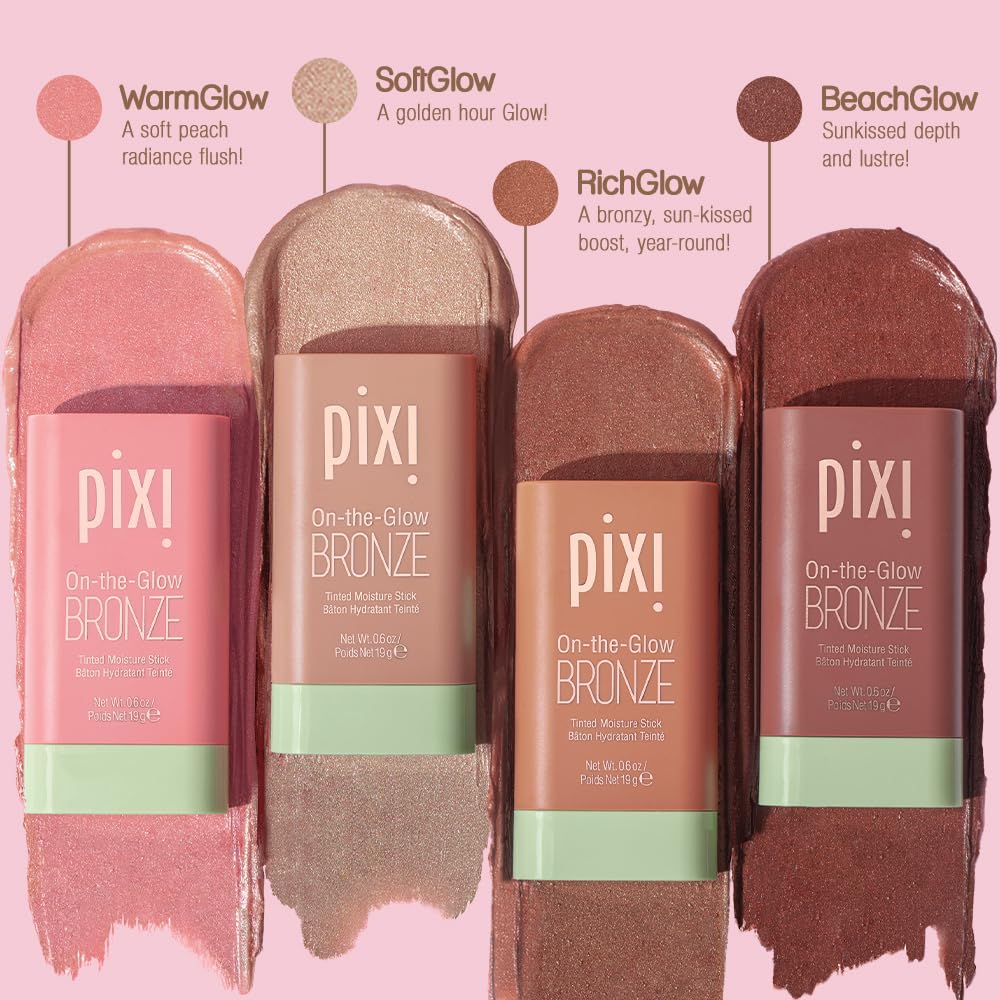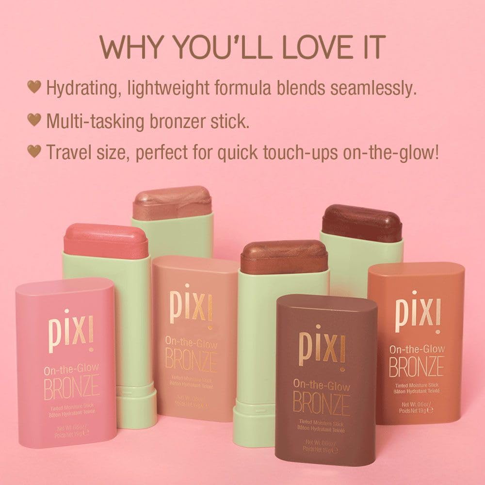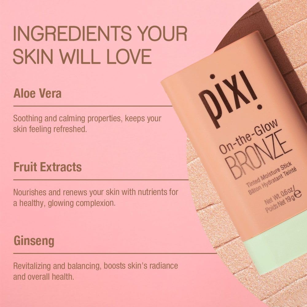 Pixi On-the-Glow Bronze – SoftGlow, Hydrating Tinted Moisture Bronzer Stick with Ginseng, Aloe Vera & Fruit Extracts, For Cheeks & Lips, 19g / 0.6oz, Paraben-Free