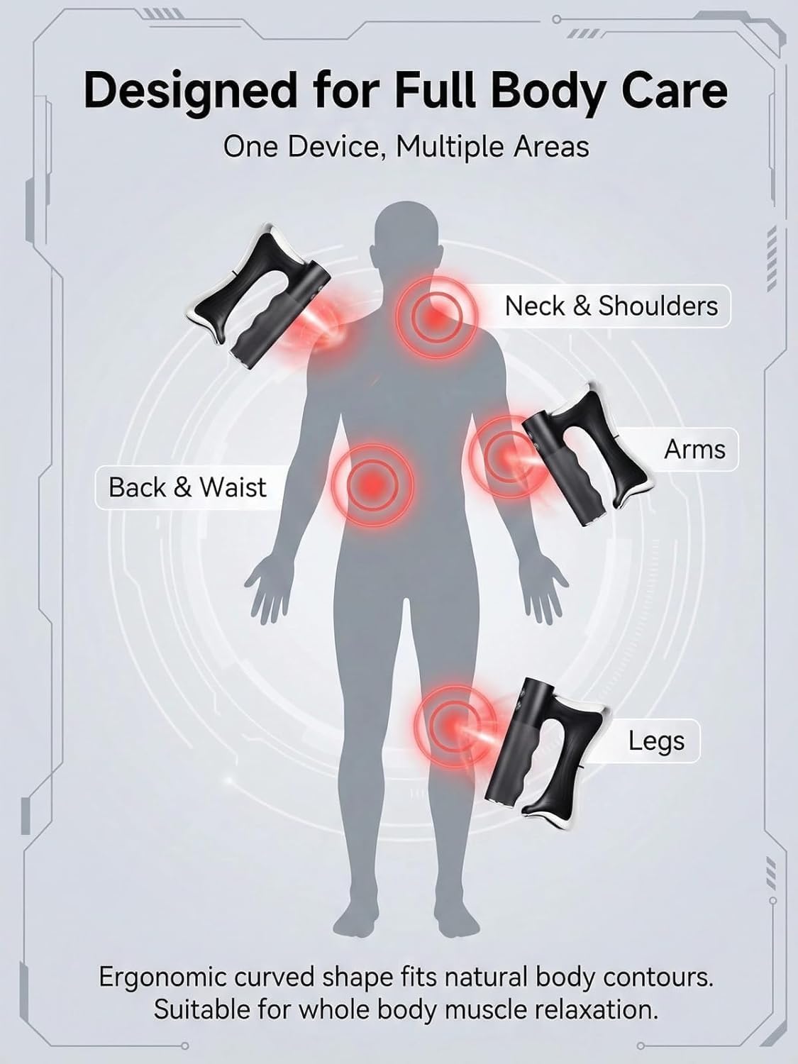 【ADAPT TO ANY PART OF THE BODY】: Ergonomically designed, this electric fascia knife can adapt to any part of the body. Whether it’s your neck, joints, waist, legs, arms, hands, shoulders, or back, this tool can provide targeted and effective massage therapy.