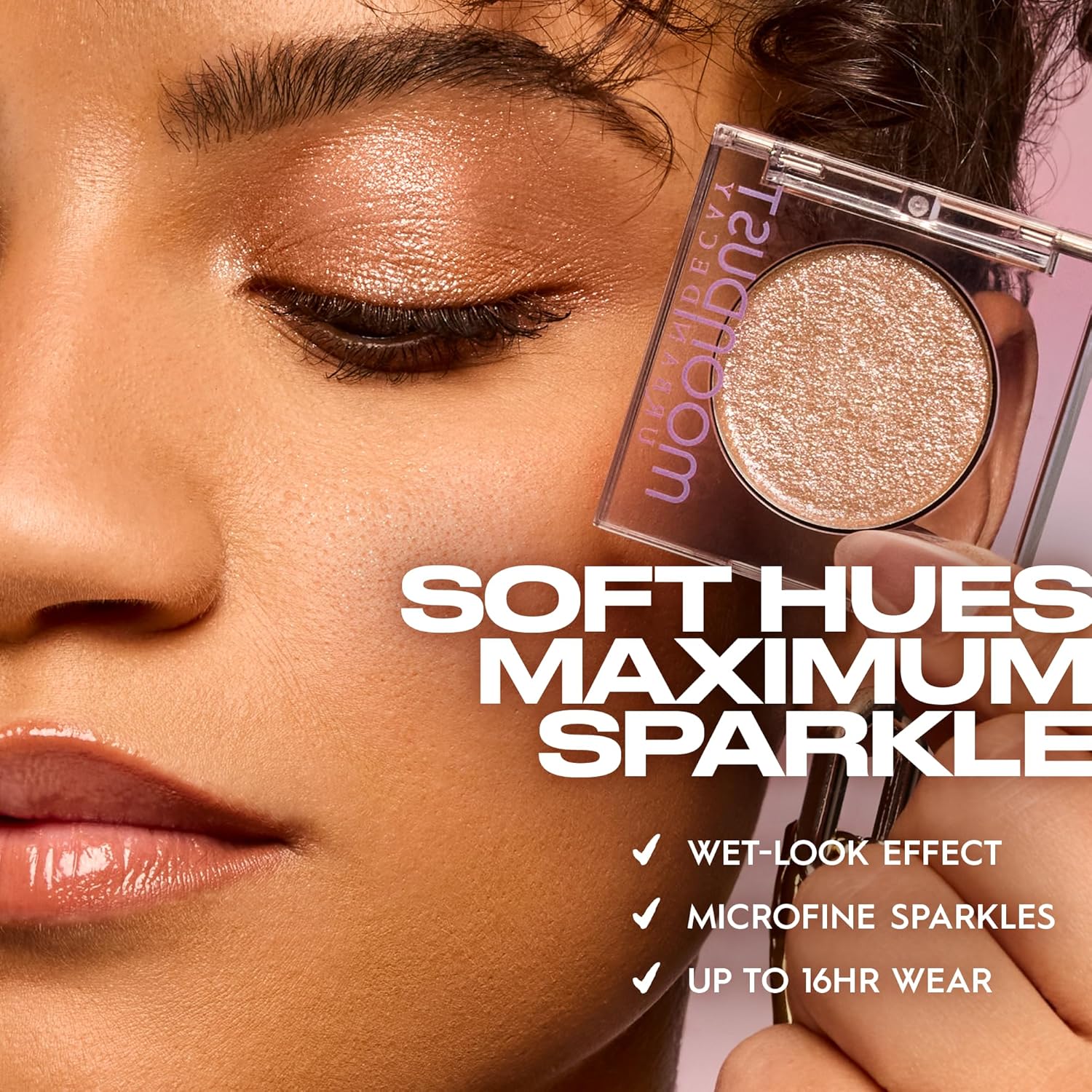 Moondust Glitter Eyeshadow works great alone for a sheer wash of shimmer or as a wet-look eyeshadow topper to enhance the shade and add sparkly dimension.