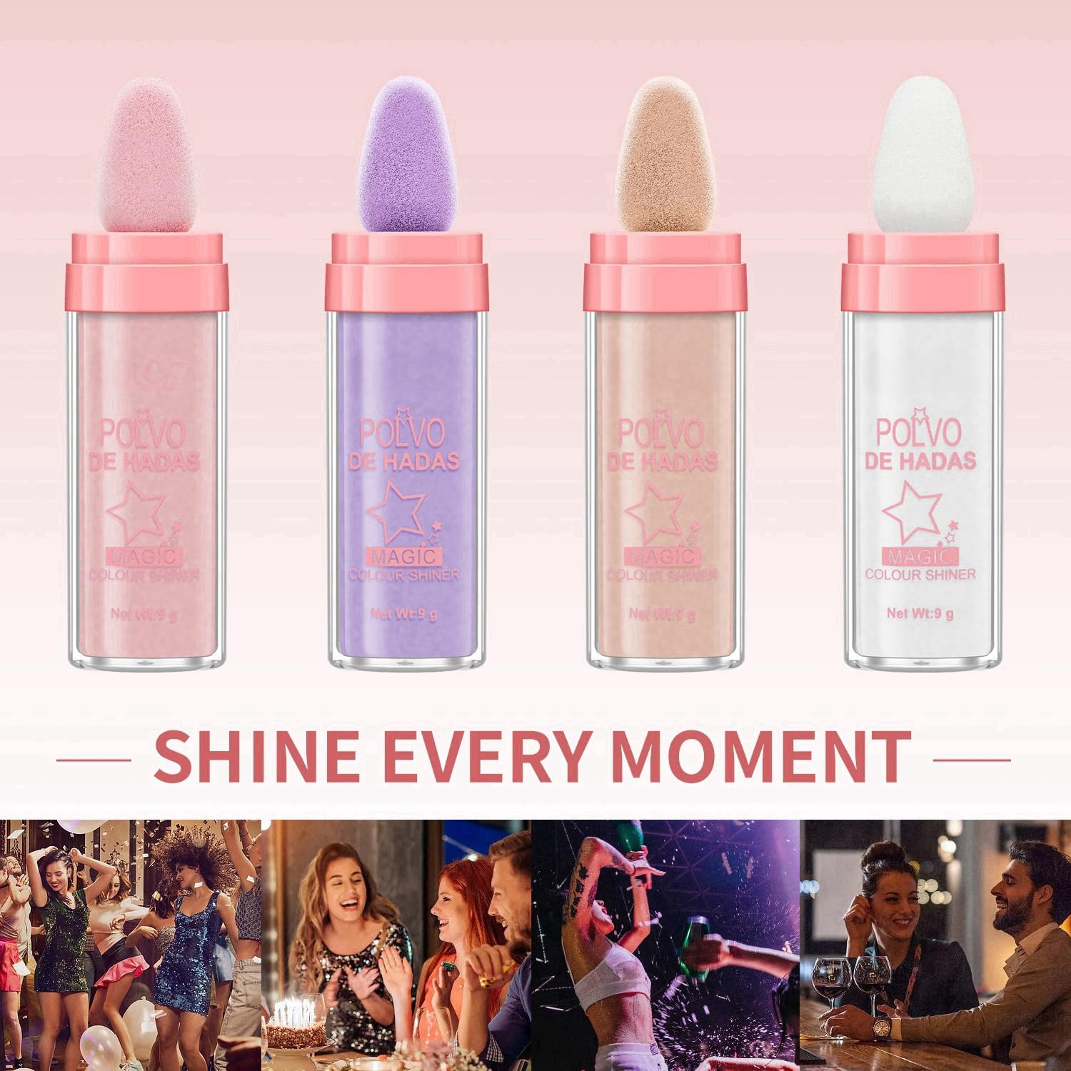 【Brightening Fairy Highlighter Powder】Polvo De Hadas a Tiktok latest trend shimming cosmetics. Contains pearlescent particles that reflect light for a radiant finish,Can be used on face, eyes, clavicle, and full body for a three-dimensional contouring effect.
