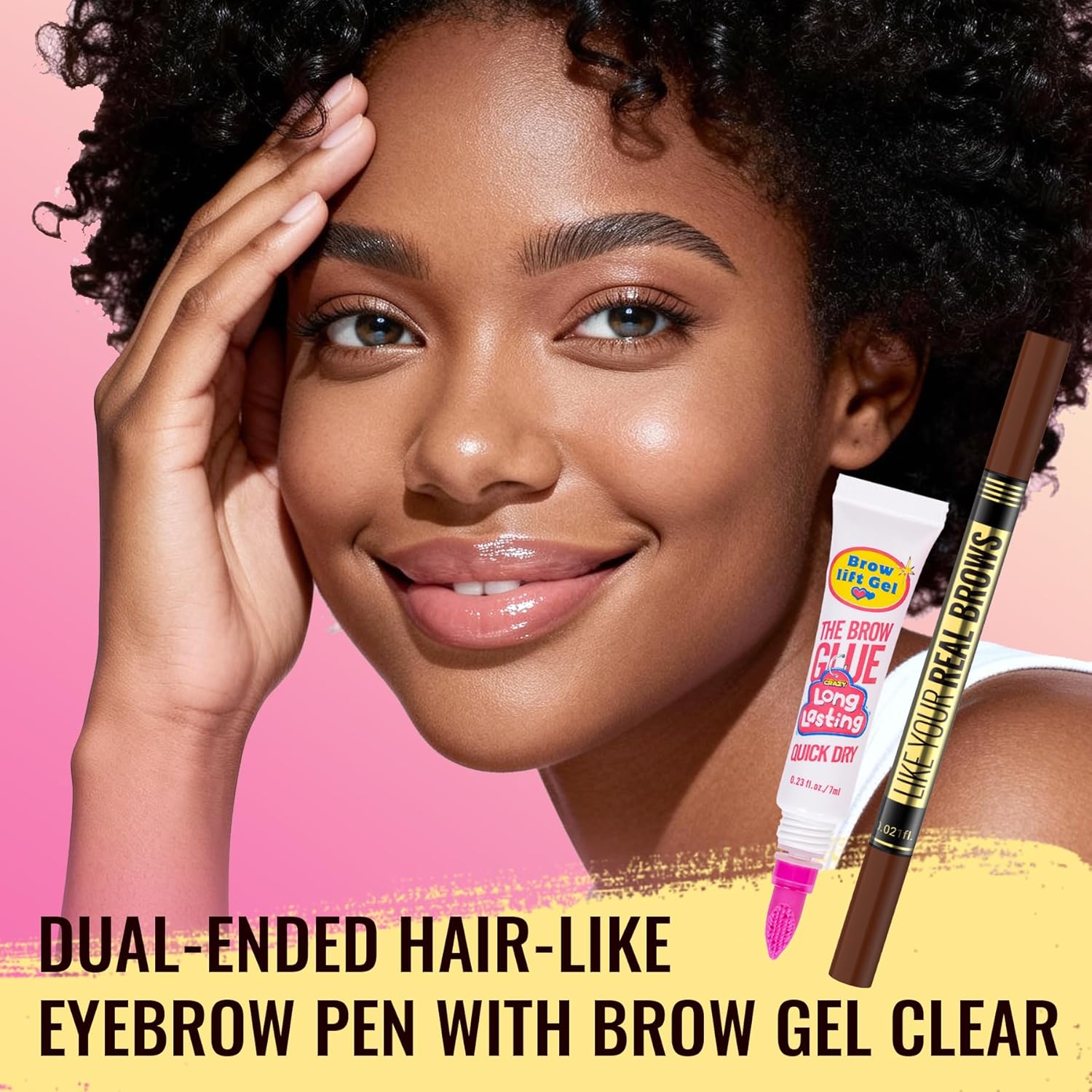 Vevivia All-in-One Eyebrow Makeup Set: Our complete kit features a dual-ended eyebrow pen with a 4-Fork-tip & precise brush tip, plus a professional brow gel; Perfect for creating full, defined, and natural-looking brows at home
