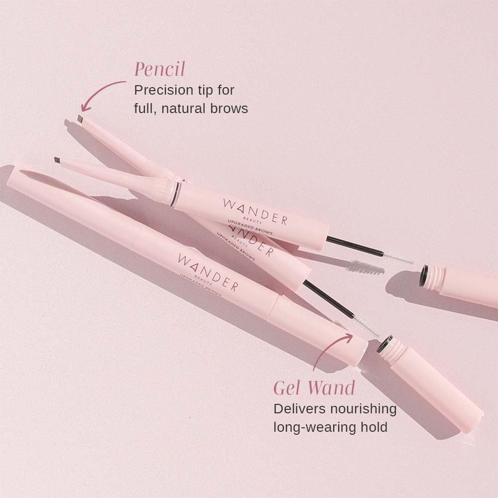 Wander Beauty Upgraded Brow Pencil & Gel Duo – Taupe – 2-in-1 Brow Makeup with Castor Oil, Peptides, Panthenol – Dual-Sided Filler, Definer & Lifter for Fuller Brows – 0.05 fl oz